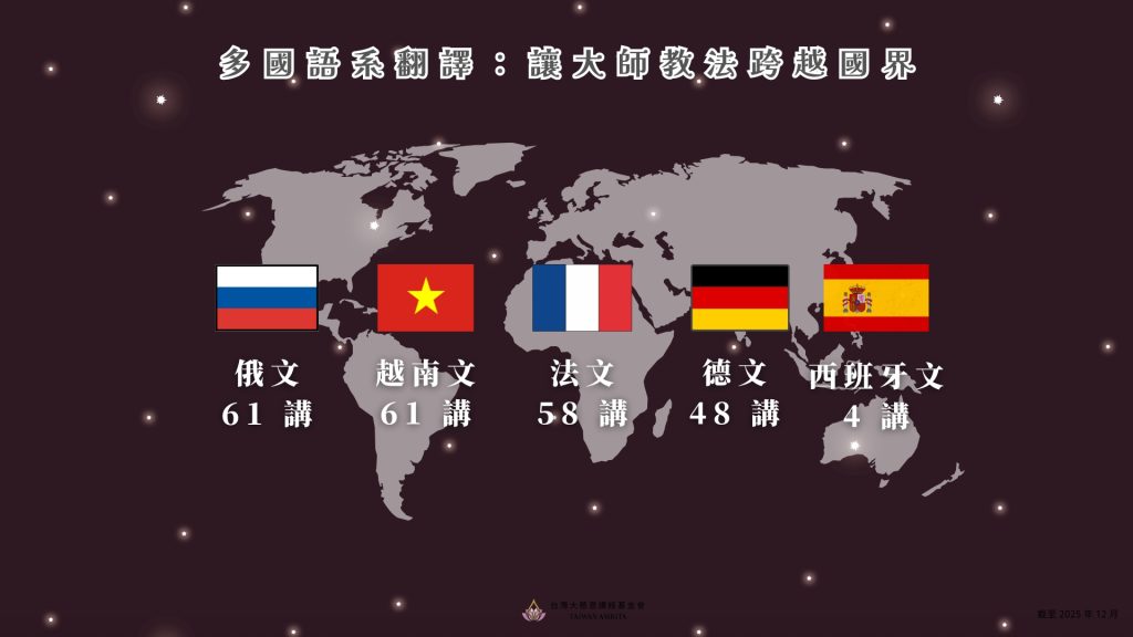 截至 2025 年底,台灣大慈恩譯師團隊已累計翻譯出 640 萬字。
